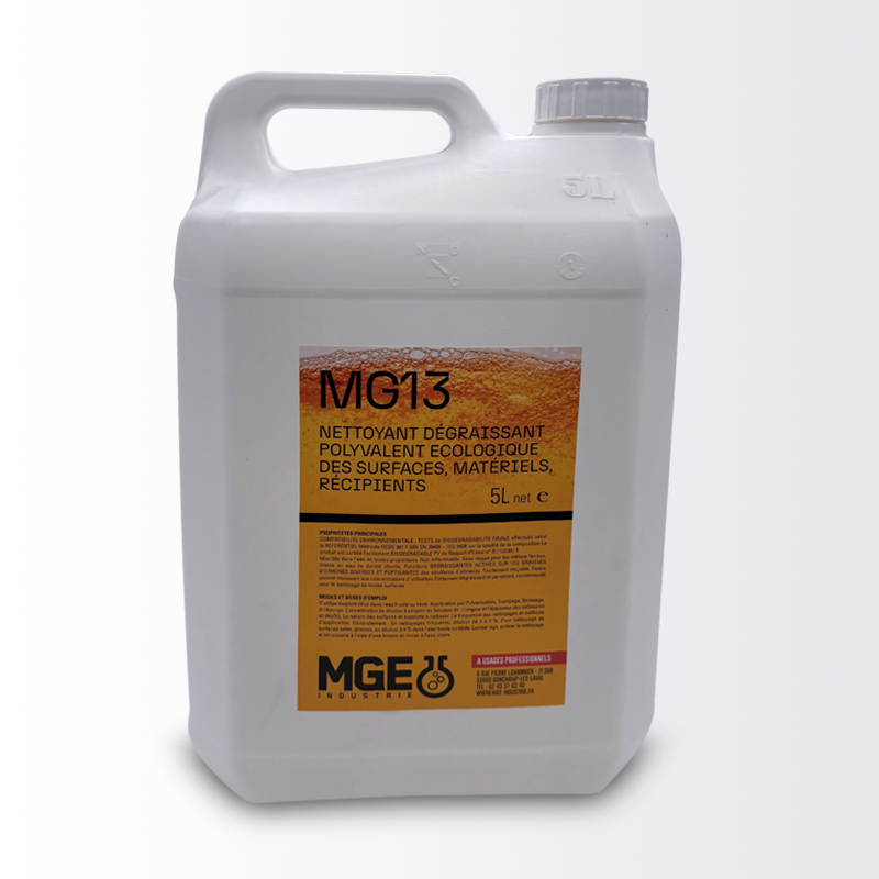 Le MG13 est un nettoyant dégraissant écologique polyvalent conçu pour le nettoyage de surfaces, matériels et récipients dans divers secteurs professionnels et industriels. Il offre une action rapide et efficace tout en respectant l’environnement.